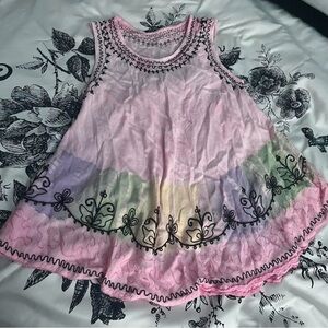 Features a soft pastel pink base, intricate lace trim, and dreamy vintage vibes. Perfect for layering or wearing on its own for that ethereal look.