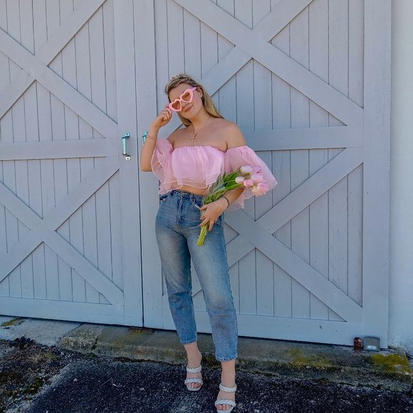 Pink Ruffle Tulle Crop top
