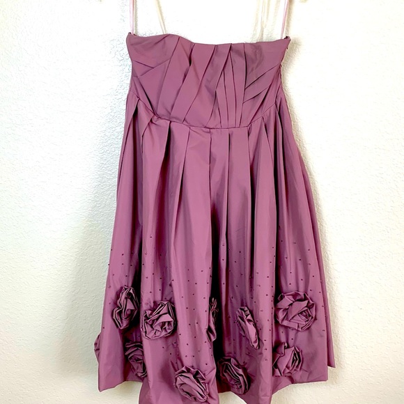 Anthropologie RYU Pink/Mauve Strapless Bubble Dress with Handcrafted Rosettes and Beads-throughout. Pleated Bodice. Sz Medium