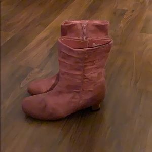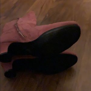 Semi new Pink ruffle boots/ with ruffles on side, comfort fit with zipper, very small heel, size 3M little girl