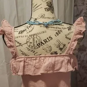 Pink/rose ruffle shoulder camisole...not quite a crop top but short