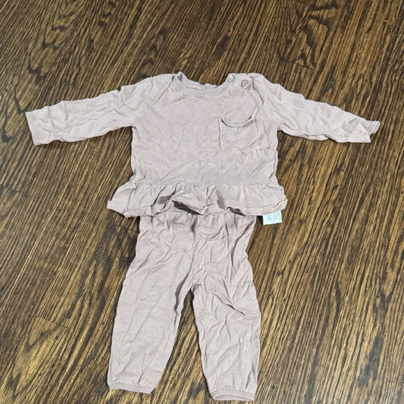 Adorable mauve baby outfit with ruffles. Includes top and pants. Like new.