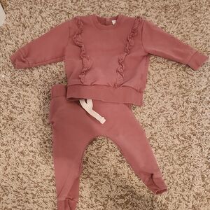 Jamie Kay 12M Adorable pink baby sweatsuit with ruffled details. Includes a long-sleeve top and matching pants. Hardly worn still in great condition. No noticable stains or flaws.