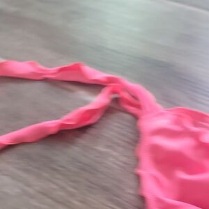 Chic pink bikini bottom with ruffled edges and side ties. Perfect for a stylish beach day.