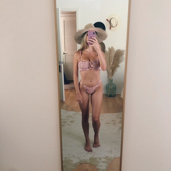 Stylish pink ruffled bikini set perfect for beach days. Enjoy comfort and style with this chic swimwear.