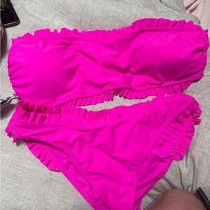 Stand out at the beach with this vibrant pink ruffled bikini set. Perfect for a stylish and comfortable swim. NWOT