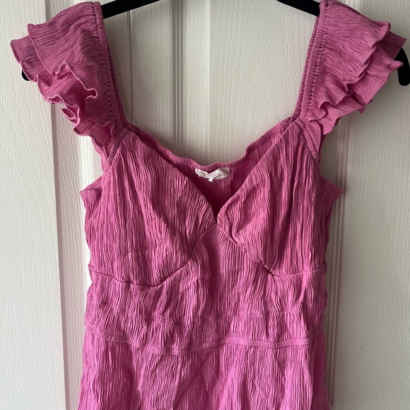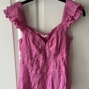 Chic pink blouse with ruffled straps. Perfect for stylish outings.