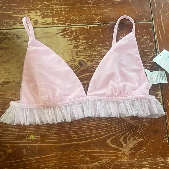 Chic and comfortable pink bralette with delicate ruffle detailing. Perfect for everyday wear. From dollskill