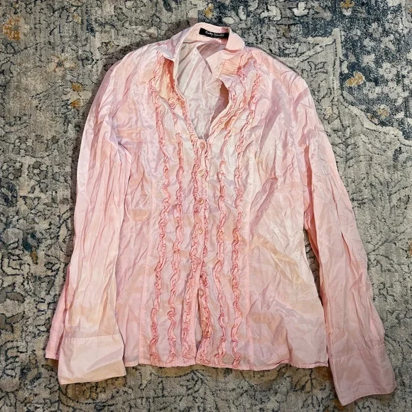 Pink Ruffled Button-Up Blouse