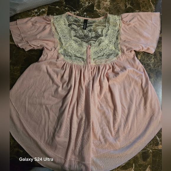 This blouse showcases a delightful pink color with elegant ruffled accents and cap sleeves, providing a relaxed and stylish look. The lightweight fabric offers comfort and ease, making it perfect for casual outings. Its feminine design adds a touch of charm to any ensemble.