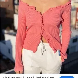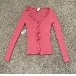 Stylish pink ruffled cardigan. Perfect for layering. Purchased from free people online. Brand is called find me now. Size M/L. Great condition.