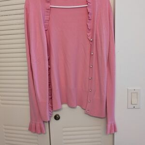 Pink Ruffled Cardigan Sweater