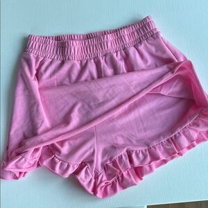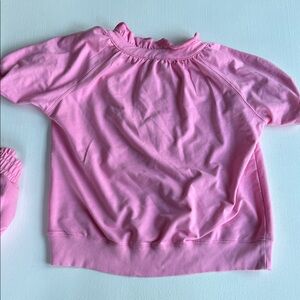 Comfortable pink casual set with ruffled neckline ruffled trim on the skort. Perfect for casual wear.