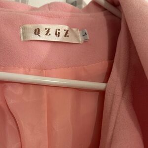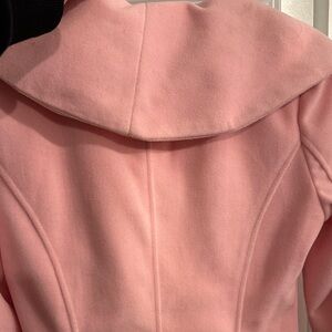 Elegant pink coat with ruffled collar. Perfect for a stylish look.