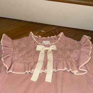 Pink Ruffled Crew Neck Sweater