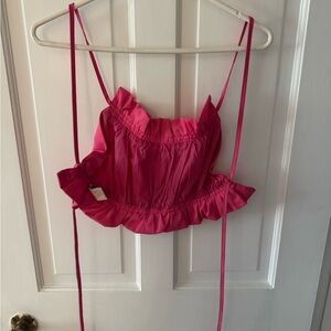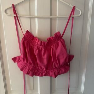 Stylish pink ruffled crop top with adjustable tie straps. Worn once, perfect going out top!