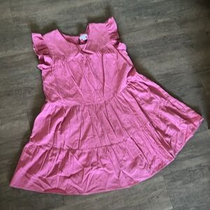 Pretty pink ruffle dress with ruffled little cap sleeves. The pit to pit measurement is 18.5 inches and the length from shoulder to hem is 32.5 inches.