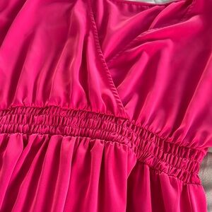 Charming pink dress with ruffled sleeves, Surplice top, perfect for any occasion. Comfortable and stylish. Wore once in Nashville for a 21st Birthday event. Looks cute with cowboy boots.
