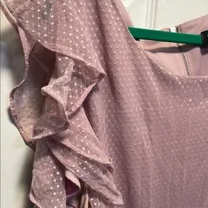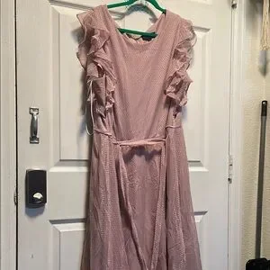 Elegant pink dress with ruffled sleeves. Perfect for special occasions. Swiss dot lane Bryant