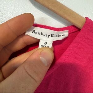 This casual sundress by Newbury Kustom features a vibrant red color, perfect for resort wear. It boasts a playful tiered skirt and flutter cap sleeves, offering a comfortable and stylish look. The crew neck design adds a classic touch to this breezy, summery dress.