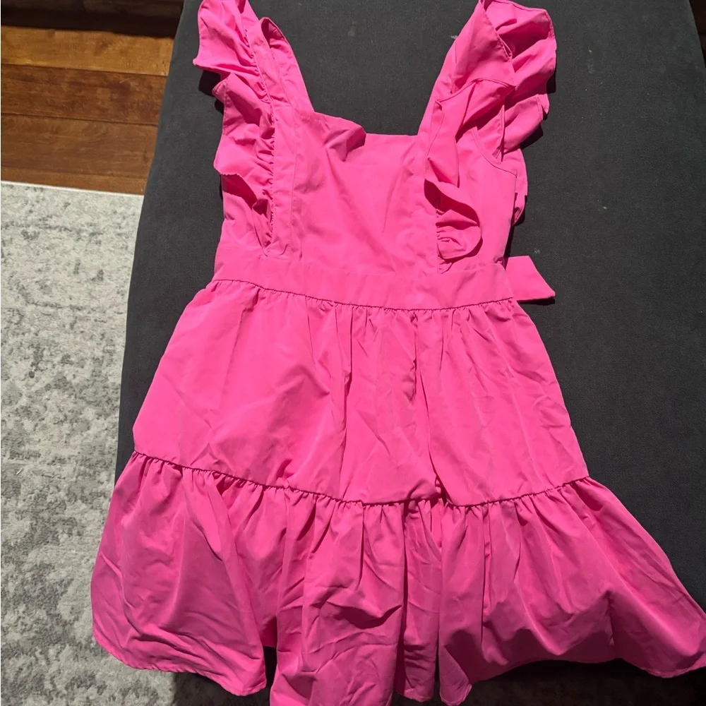 Bright and playful pink dress with charming ruffles, perfect for any occasion.