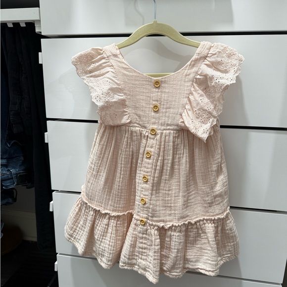 Like new! This dress was washed and never got a chance to wear. Size 2T runs a little big IMO.