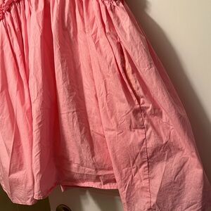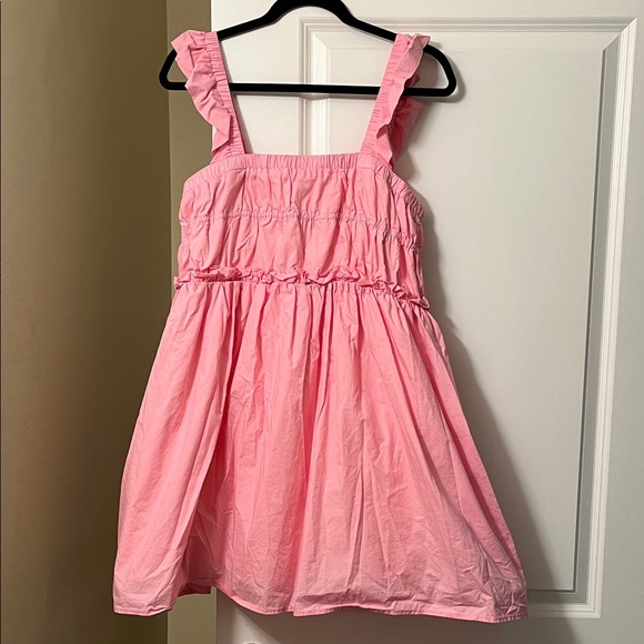 Adorable pink dress with charming ruffle details. Perfect for any occasion. Flare style. Size medium. By Moodie.