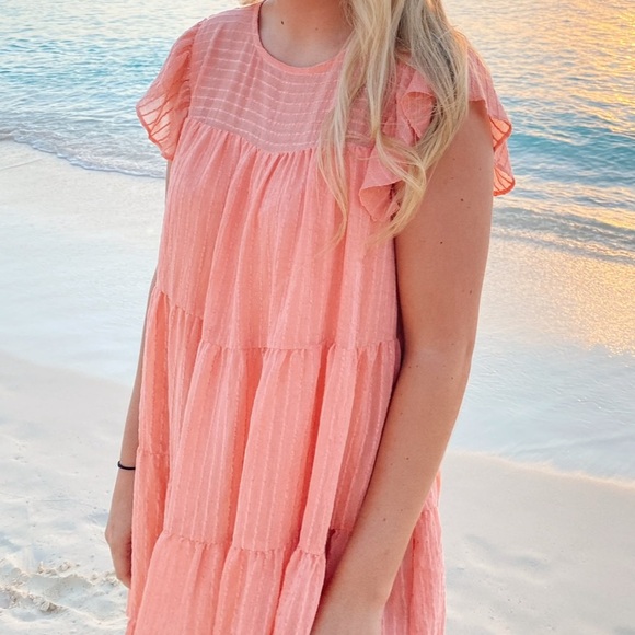 Charming pink dress with ruffled sleeves, perfect for any occasion. Comfortable and stylish