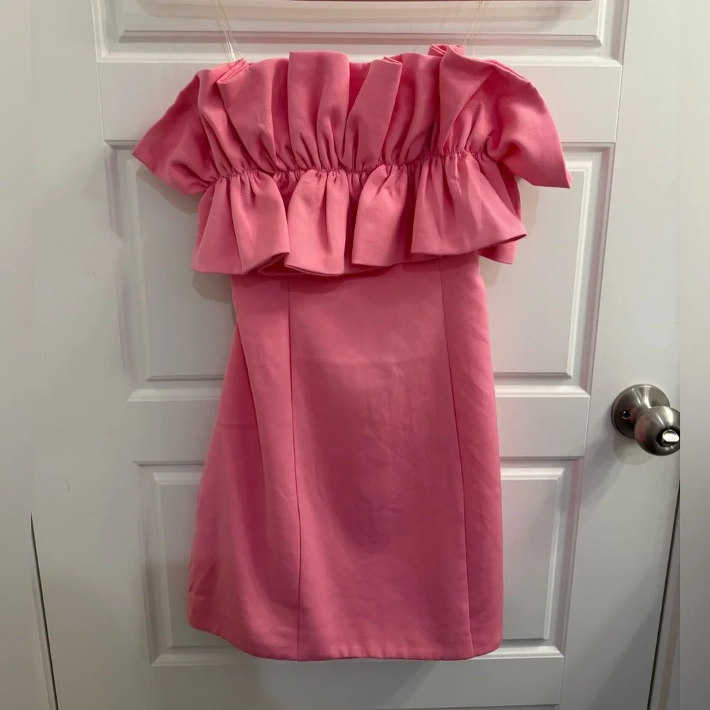 This pink dress features playful ruffles, perfect for any special occasion. I used it for senior photos and sorority recruitment!