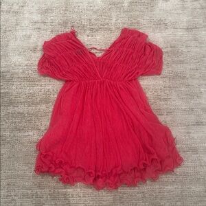 Chic pink ruffled dress with a flowy design. Perfect for any occasion. Absolutely stunning dress for the summer. Perfect for the pool or a summer backyard party! Amazing quality - brand new never worn!