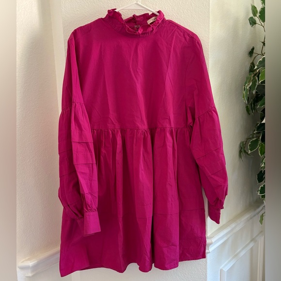 Charming pink dress with ruffled details, perfect for any occasion.