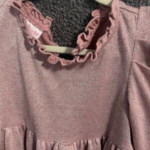 Chic light purple dress featuring ruffled neckline and puff sleeves. Includes convenient pockets.