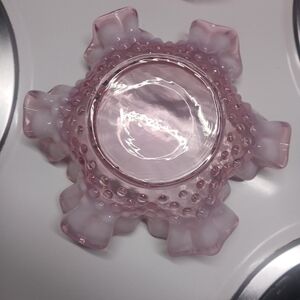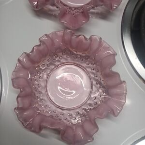 both are included Very rare pieces no chips or cracks look amazing under light.Elegant pink glass bowls with ruffled edges. Perfect for decor or serving.