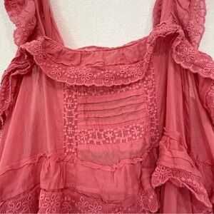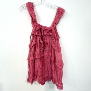 Embrace elegance with this pink ruffled jumpsuit. Perfect for any occasion, it offers a stylish and comfortable fit.