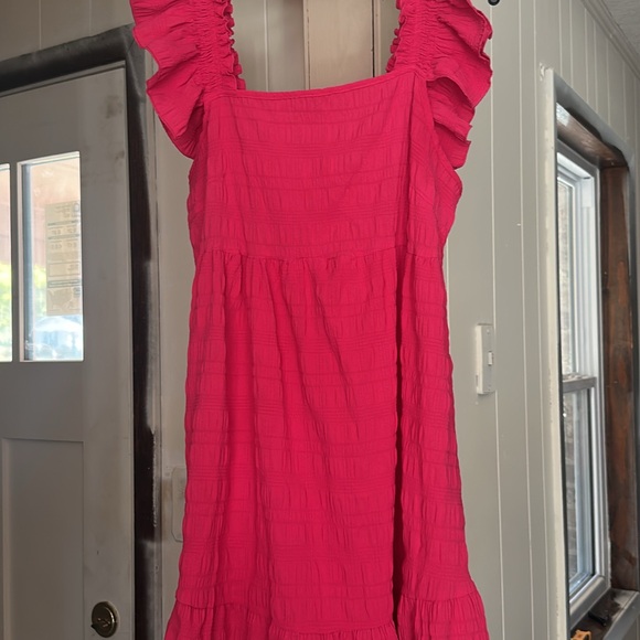 Charming pink dress with playful ruffles, perfect for any occasion.