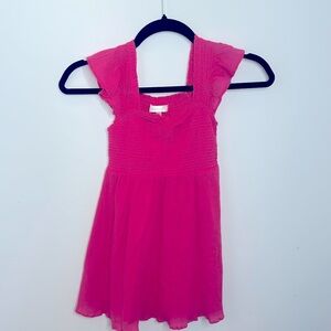 Charming pink dress with ruffled sleeves, perfect for any occasion.