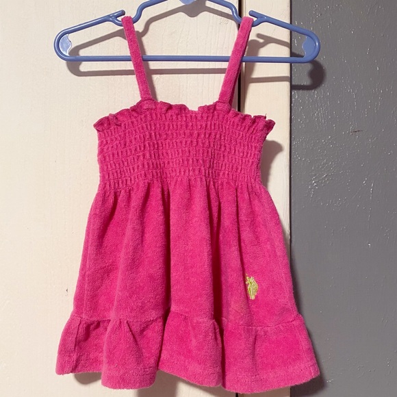 Adorable pink kids dress with ruffled details, perfect for any occasion.