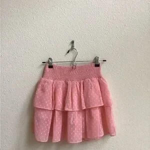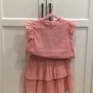 Adorable matching set with monochromatic dots in a beautiful peach color. Top is so feminine with angel sleeves and a keyhole back closure. Fun tiered skirt with smocked top for a perfect comfortable fit. Perfect for any special occasion or to make any day special!