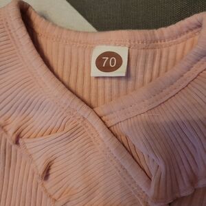 Adorable pink matching set for kids featuring a ruffled design. Perfect for a stylish and comfortable look.