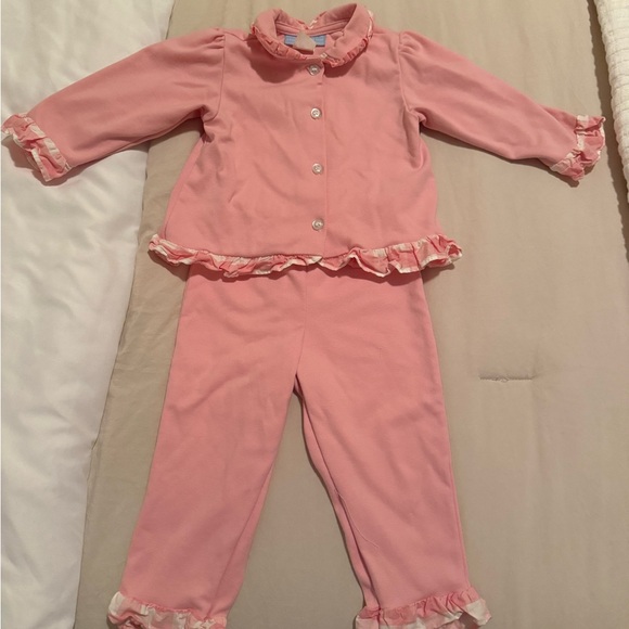 Cozy and adorable pink pajamas with charming ruffle details. Perfect for a comfortable night's sleep.