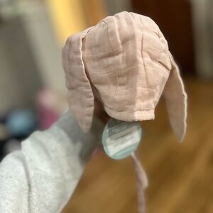 Bunny bonnet and Adorable blush romper with ruffled sleeves, perfect for your little one's wardrobe. Soft and comfortable for all-day wear.