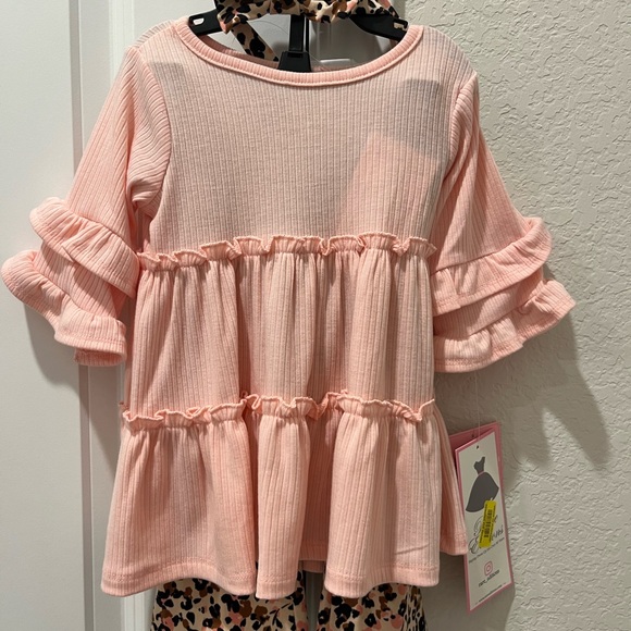 Adorable pink ruffled top, pants, and matching headband. perfect for your little one's wardrobe. Soft and comfortable for all-day wear.