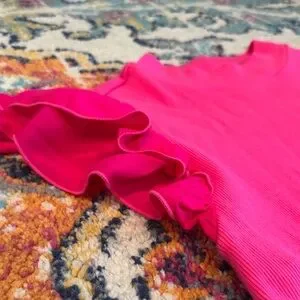 Bright pink women’s top with stylish ruffled sleeves. Perfect for adding a pop of color to any outfit.
