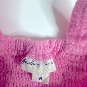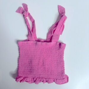 Adorable pink ruffled top for kids with charming bow straps. Perfect for a playful and stylish look.
