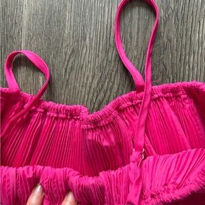 Bright pink ruffled top perfect for kids. Stylish and comfortable for any occasion. Pink pleated ruffle top with adjustable straps — playful, flirty, and perfect for festivals or rave nights 💕 Lightweight and easy to style with minis or low-rise denim.