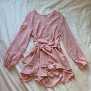 Pink Ruffled Long Sleeve Romper