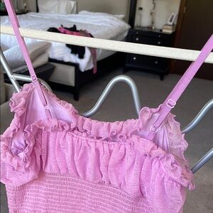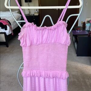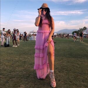 gorgeous pinky purple maxi dress. fitted torso, adjustable straps, flowy on the bottom. this was part of a special collab with a designer and urban outfitters. worn once (last pic)
