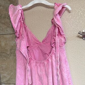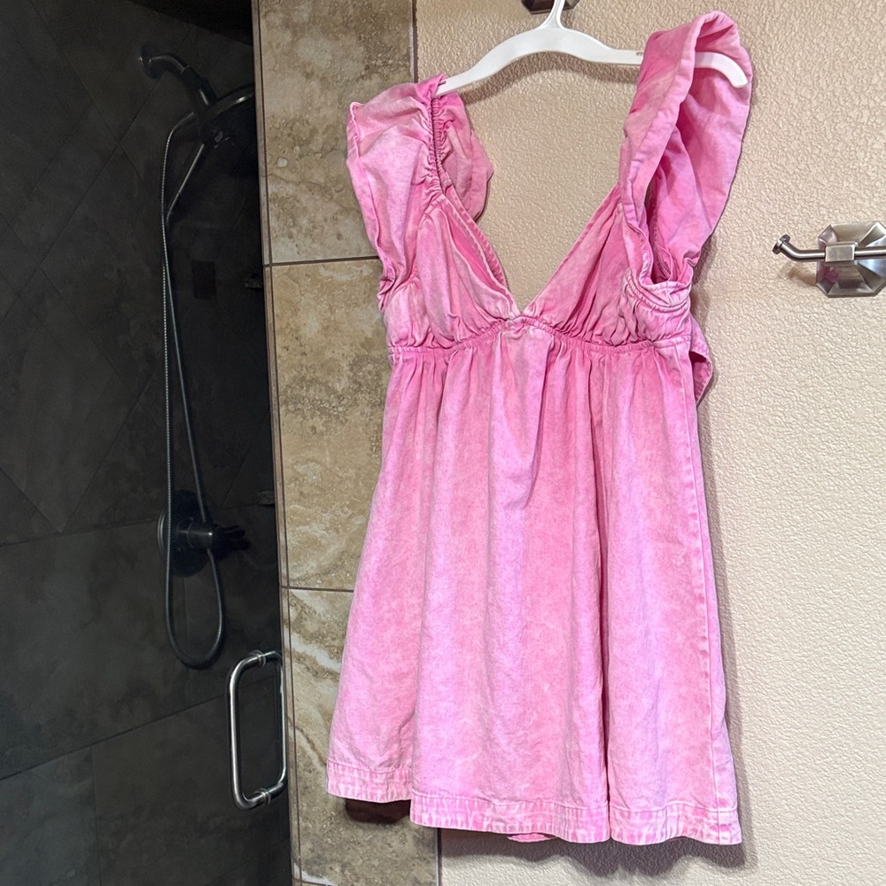 Chic and stylish pink mini dress with ruffled sleeves. Perfect for any occasion. Worn once to a country concert! So cute and attention grabbing