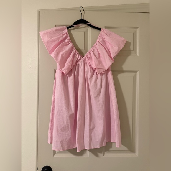 Only worn once! Step out in style with this chic pink mini dress, featuring elegant ruffles for a playful touch. Perfect for any occasion.