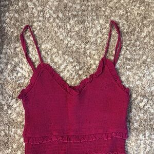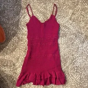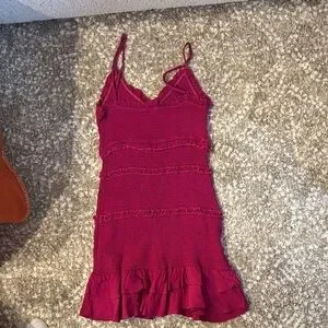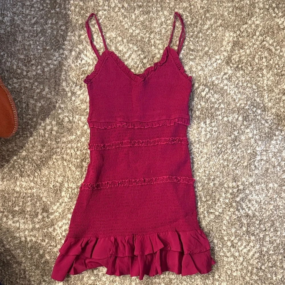 Stylish pink mini dress with ruffled details. Perfect for a night out. Super stretchy, would fit sizes XS-M
